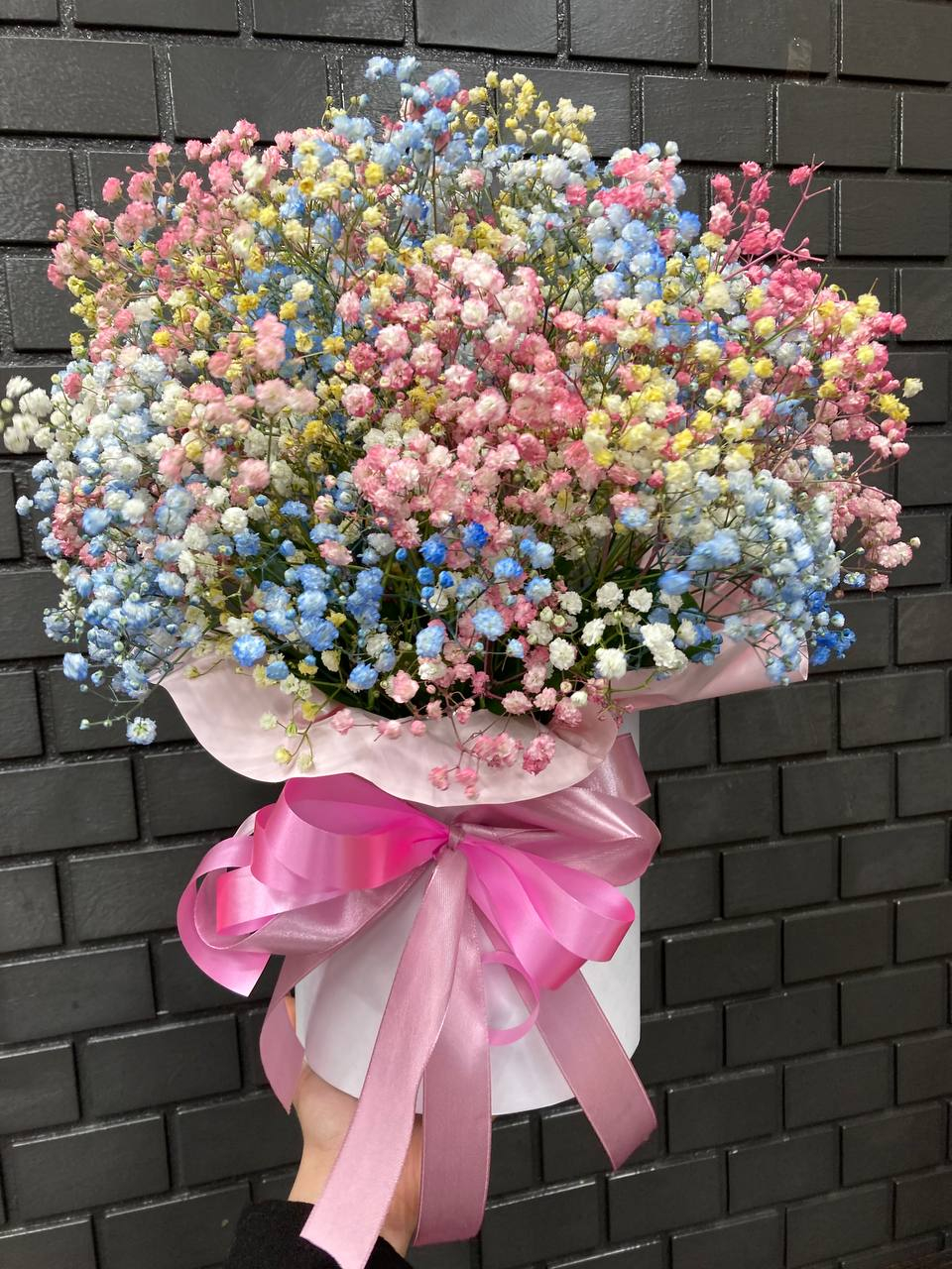 Это элегантное и воздушное произведение искусства, созданное природой и руками мастеров. Нежные соцветия гипсофилы, окрашенные в яркие и насыщенные оттенки, создают неповторимую атмосферу радости и волшебства. Эта композиция станет прекрасным дополнением к любому интерьеру, наполняя пространство светом и гармонией.